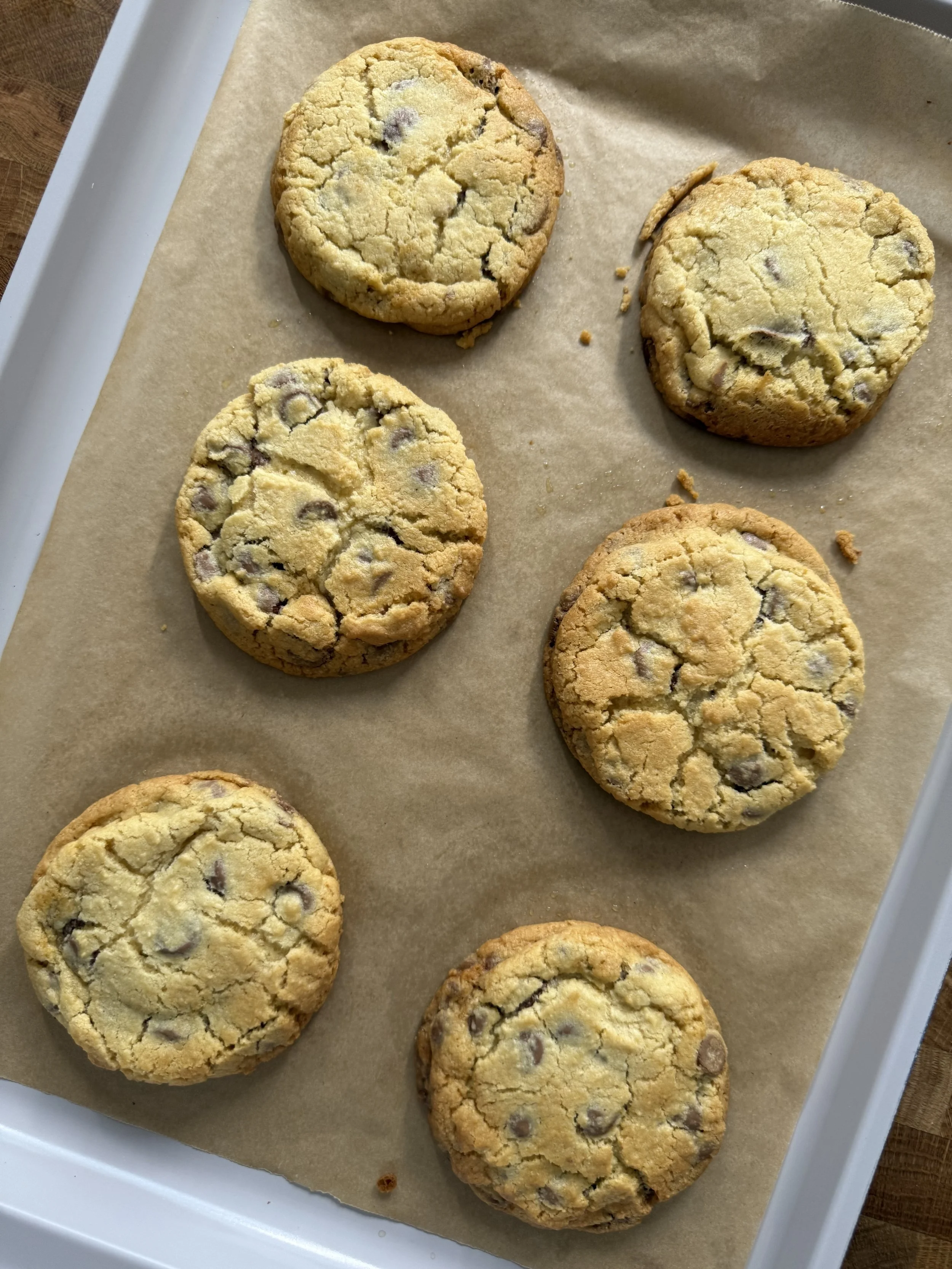 Size matters – 70g makes large bakery-style cookies. For smaller cookies, shape into 40g balls and reduce baking time by 2–3 minutes.